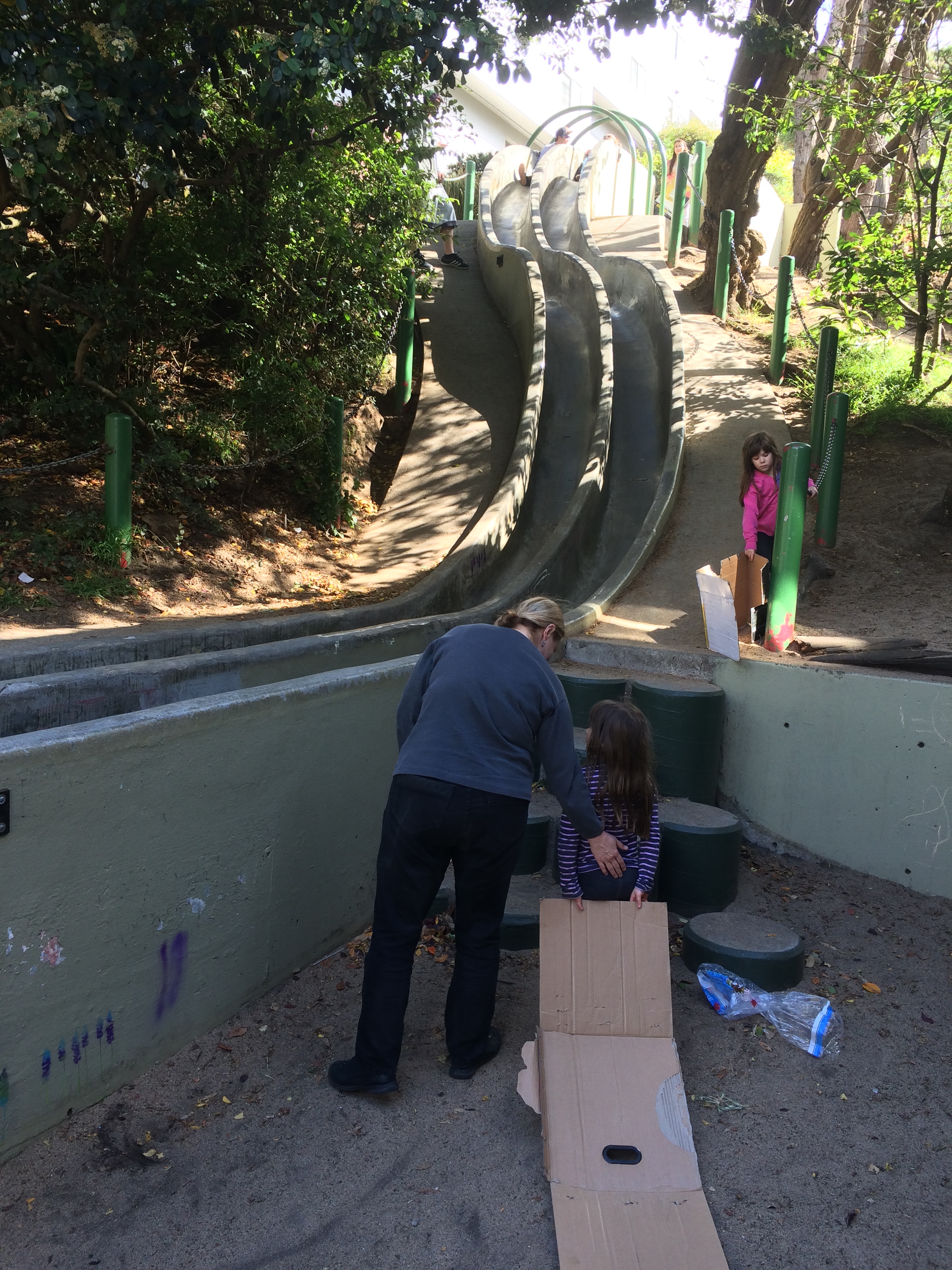 Bring a piece of cardboard or borrow the many that are laying around and race a partner. The park is traditionally for children and closes at dark. (They apparently frown upon adults racing in the park without children.) The park also boasts a neighborhood garden that looks to be in rehab at the moment.