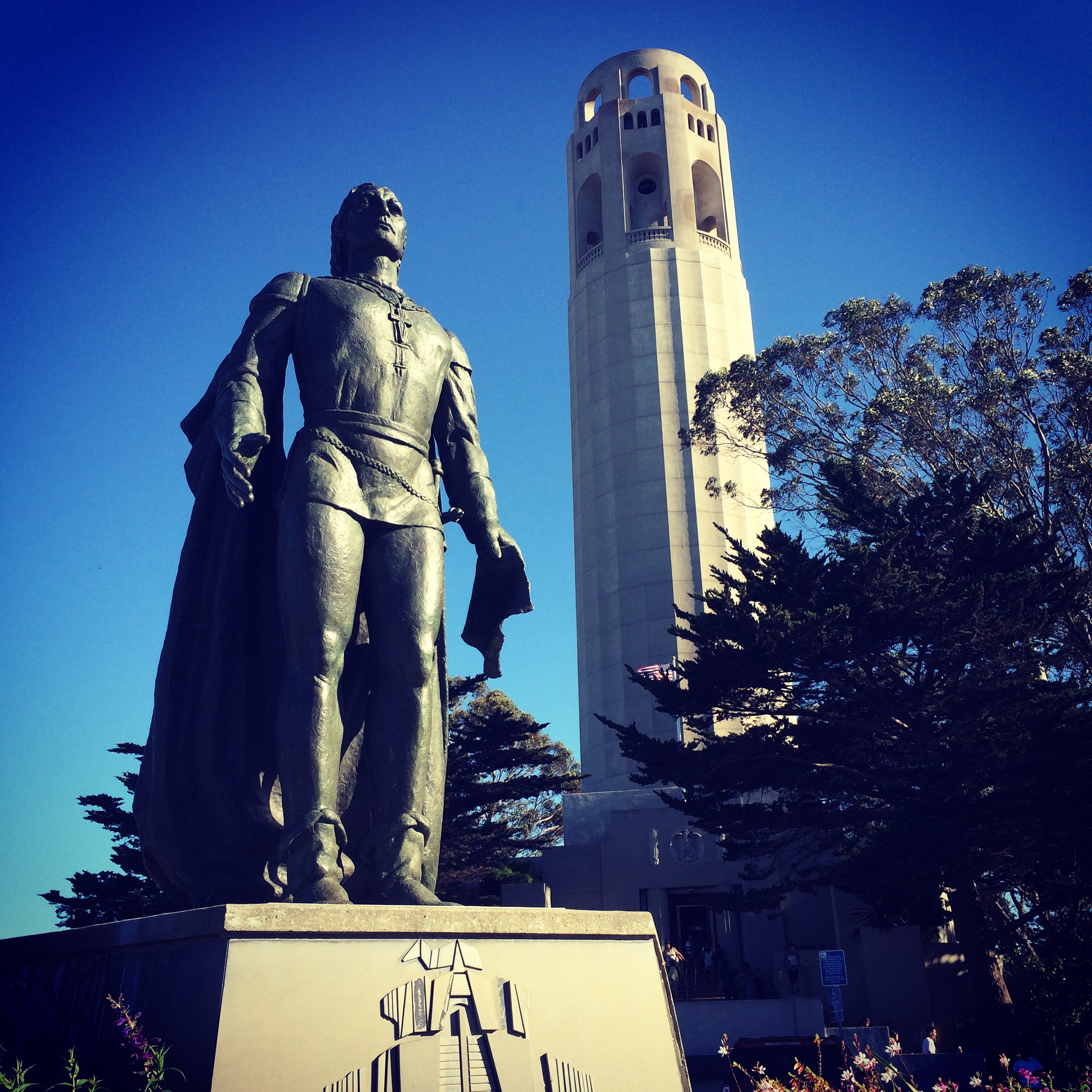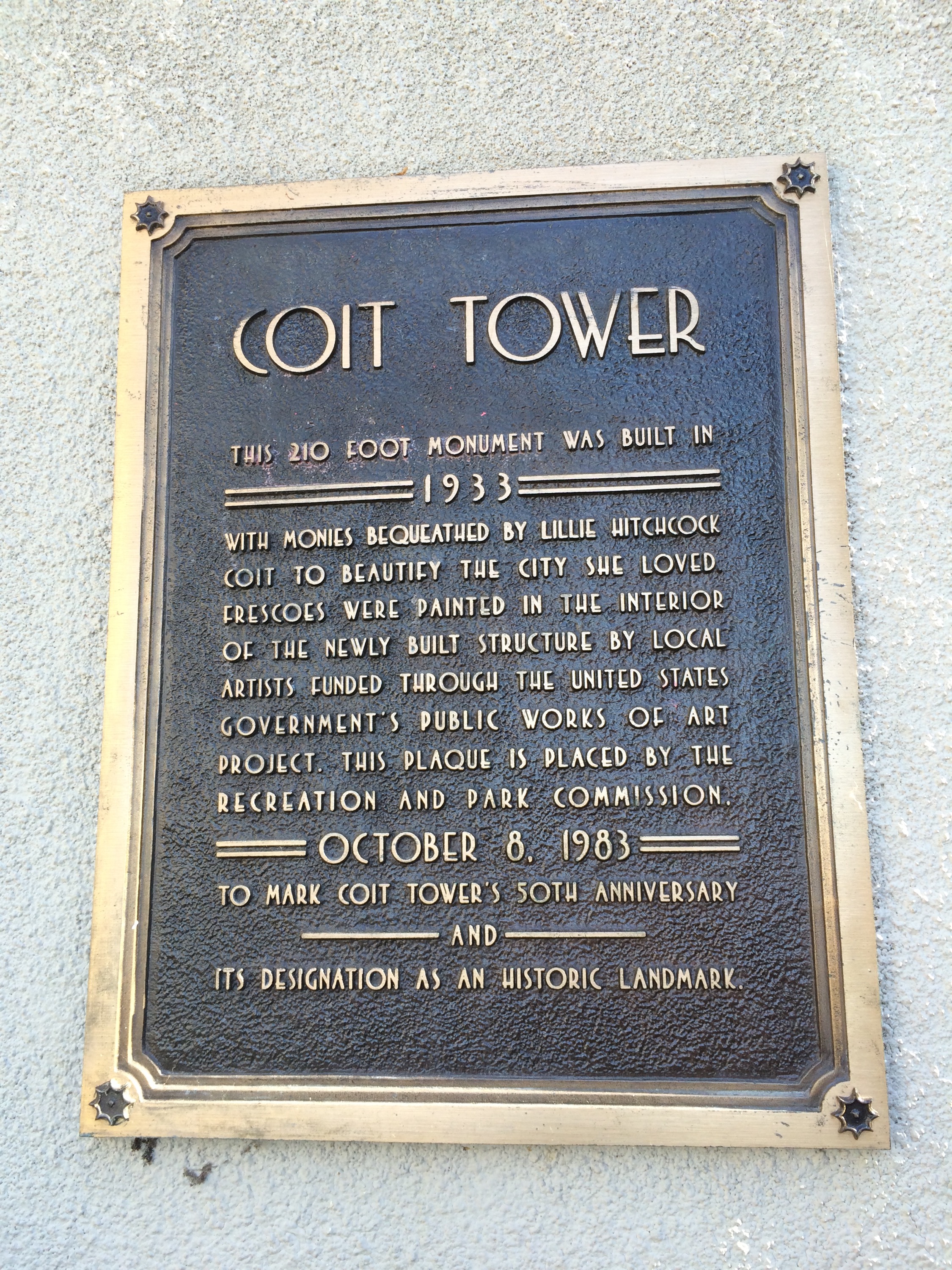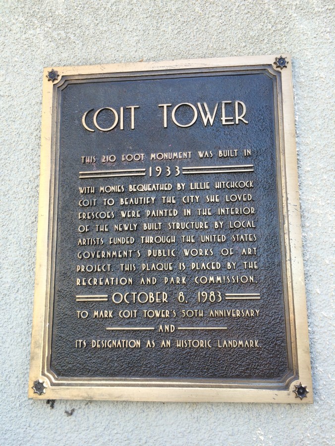 Coit Tower is an important part of the San Francisco skyline.  Sitting atop Telegraph Hill it juts up 210 feet sticking out from the buildings around it like a beautiful sore thumb.  We will just pretend I am only 29 years old and say that I have been visiting SF for 29 years and have never gone all the way up to the top of the tower.  Why?  Who the heck knows.  Well, I finally did it.  And we did it right.  We parked the car and had Uber take us up to the tower so we wouldn’t have to fight the traffic and parking problem.  (There are about ten spots at the top of the hill!  Only ten people!)