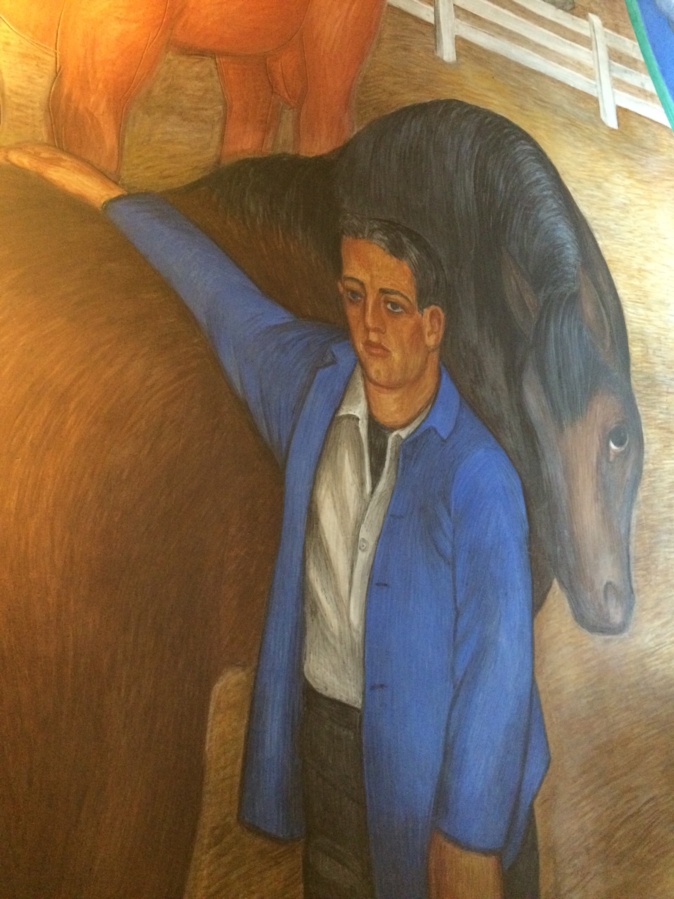 The art deco style tower is filled with murals.  The murals were a public works project for local artists in the 1930’s.  The murals have been rehabilitated and are a wonderful spectacle while you are waiting your turn to go up in the elevator.  The murals tell the story of the bay area and California at large.  While the characters in the murals are sometimes creepy they are certainly entertaining.