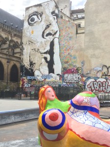 (With Nikki de Saint-Phalle’s sculptures…)