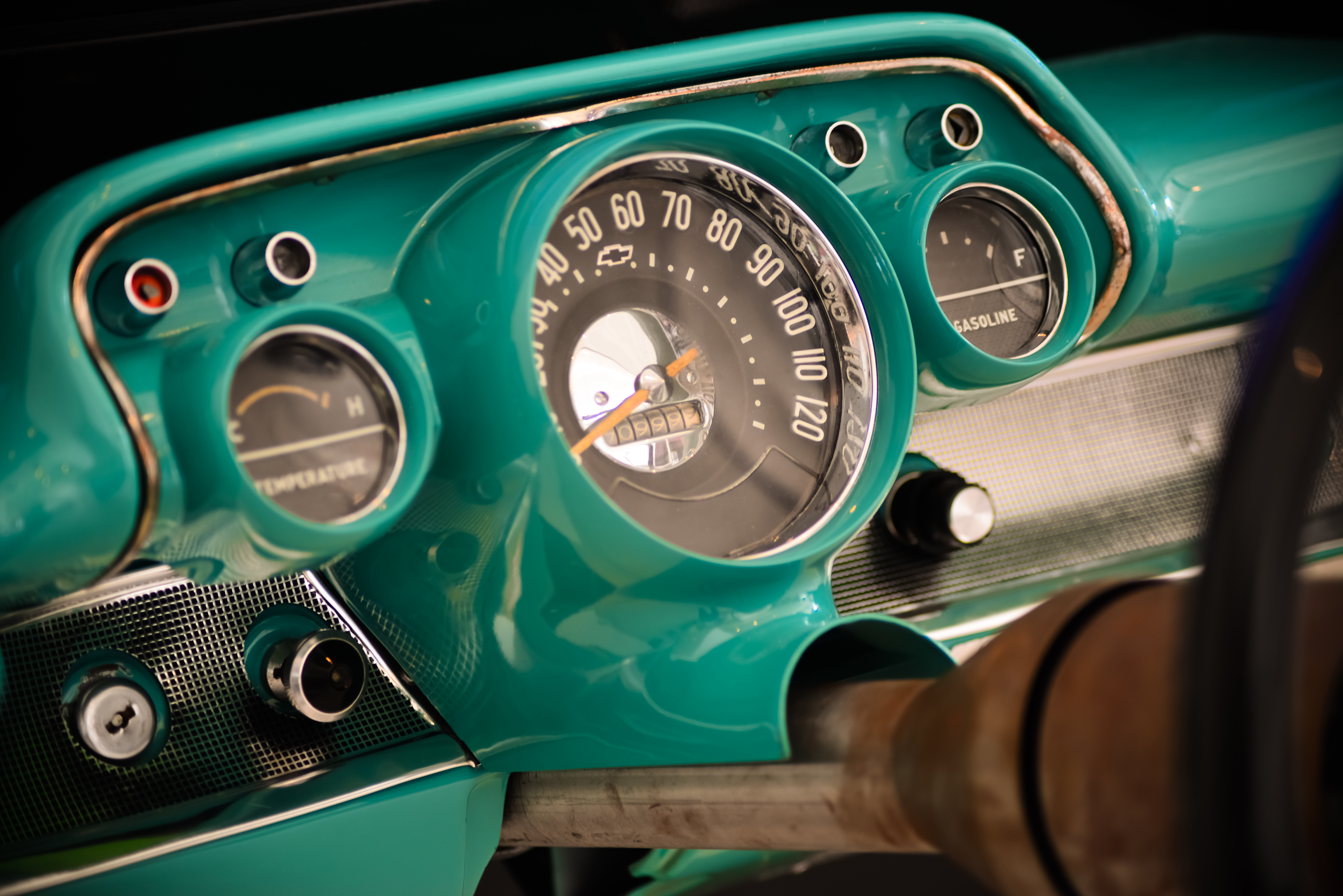 My husband is an obsessive “car guy.”  Most girls turn up their noses at the thought of going to car museums.  I however, really enjoy them.  My first car as a kid was a 1965 Mustang and my family growing up has owned an embarrassingly large number of old and interesting cars.  (My husband and I bought our current house based on the number of garage spaces…or at least that’s what my husband will tell you.)  This love of cars coupled with the opportunity to snap some photos of something interesting situated in museum lighting always makes me happy.