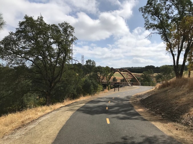 The stretch of the beautiful bike trail runs parallel to the Folsom Prison tying it all together to his famous song “Folsom Prison Blues.” The trail is very pleasant and very easy. My only criticism would be several signs with plans for public art related to Cash which are planned for the future but not yet complete. The portion of trail I walked on had no direct connection to Cash other than the Robber’s Ravine Bridge with a marker noting some Cash trivia. Well, actually come to think of it I do have one other criticism, the portion of the trail which overlooks Folsom Lake does not have parking and was too far to walk with a baby in a stroller so I never made it to the end where the overlook and Cash guitar Pick art would have greeted me.