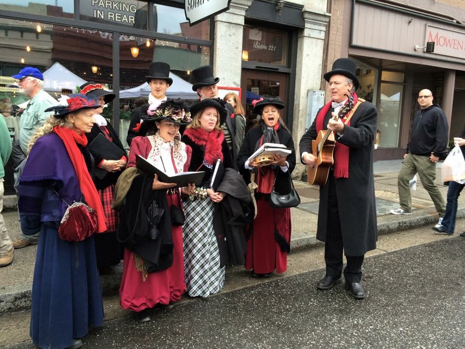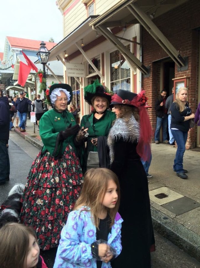 This year, I finally made it to Victorian Christmas in Nevada City. Clearly everyone else had the same idea after being cooped up indoors during the torrential floods of the last few weeks. Crowds were enormous and the energy was high. Children dressed up in various forms of Victorian garb were dancing, singing, and playing instruments. Lots of dogs were decked out in funny little Christmas outfits. Carolers were singing. Even Santa and Missus Claus delighted children and adults alike. A man walked around with mistletoe on a stick catching unsuspecting couples whether they came together or not…