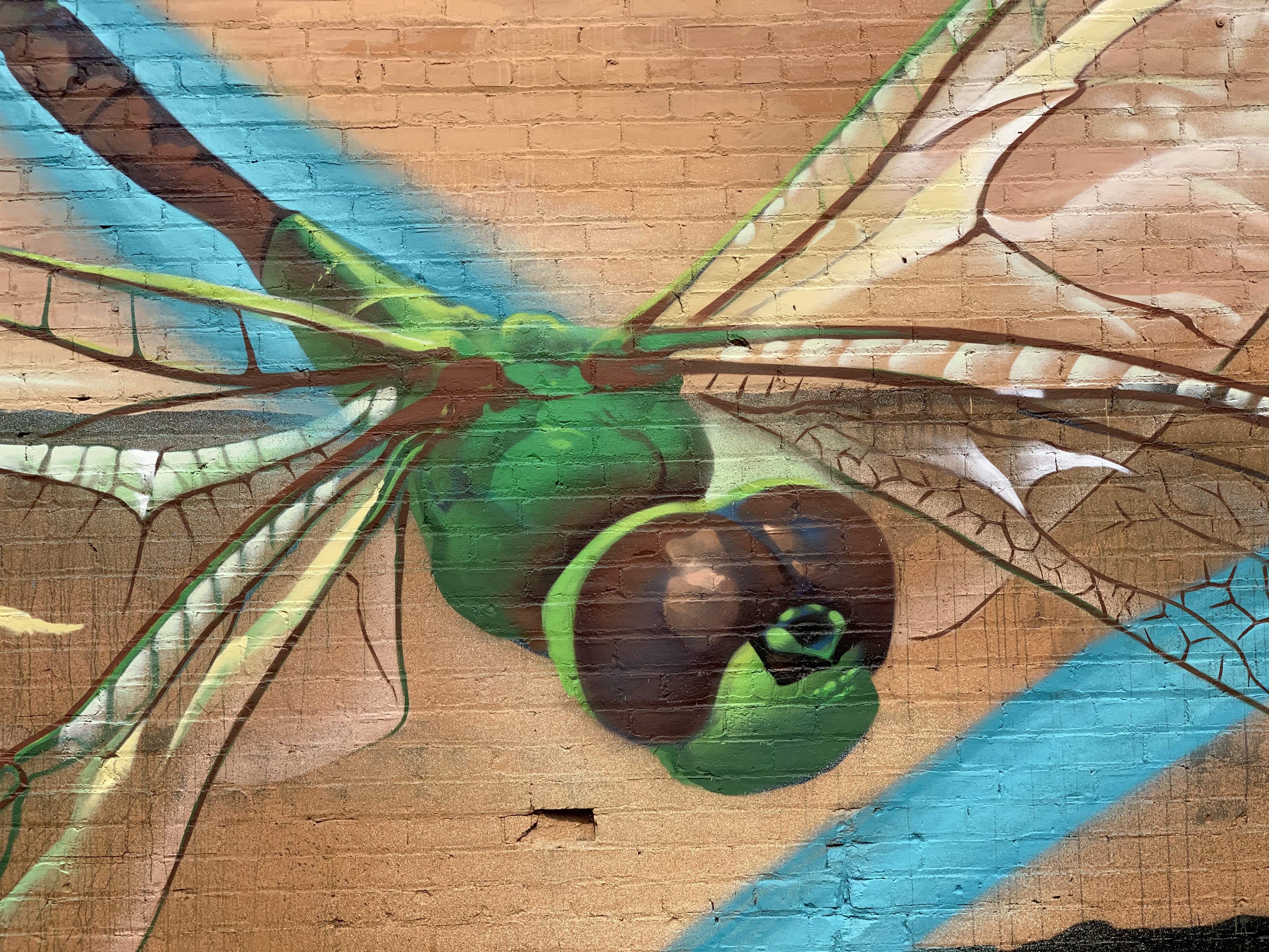Old Soul Coffee in downtown Sacramento is participating in the Wide Open Walls 916 festival along with many downtown businesses. Lots of cars and signs were obscuring the wall so I took a few closeups of dragonflies which were my three year old son’s favorites. (He loves bugs right now much to his mother’s chagrin.) Put down your fly swatters these dragonflies are here to stay.