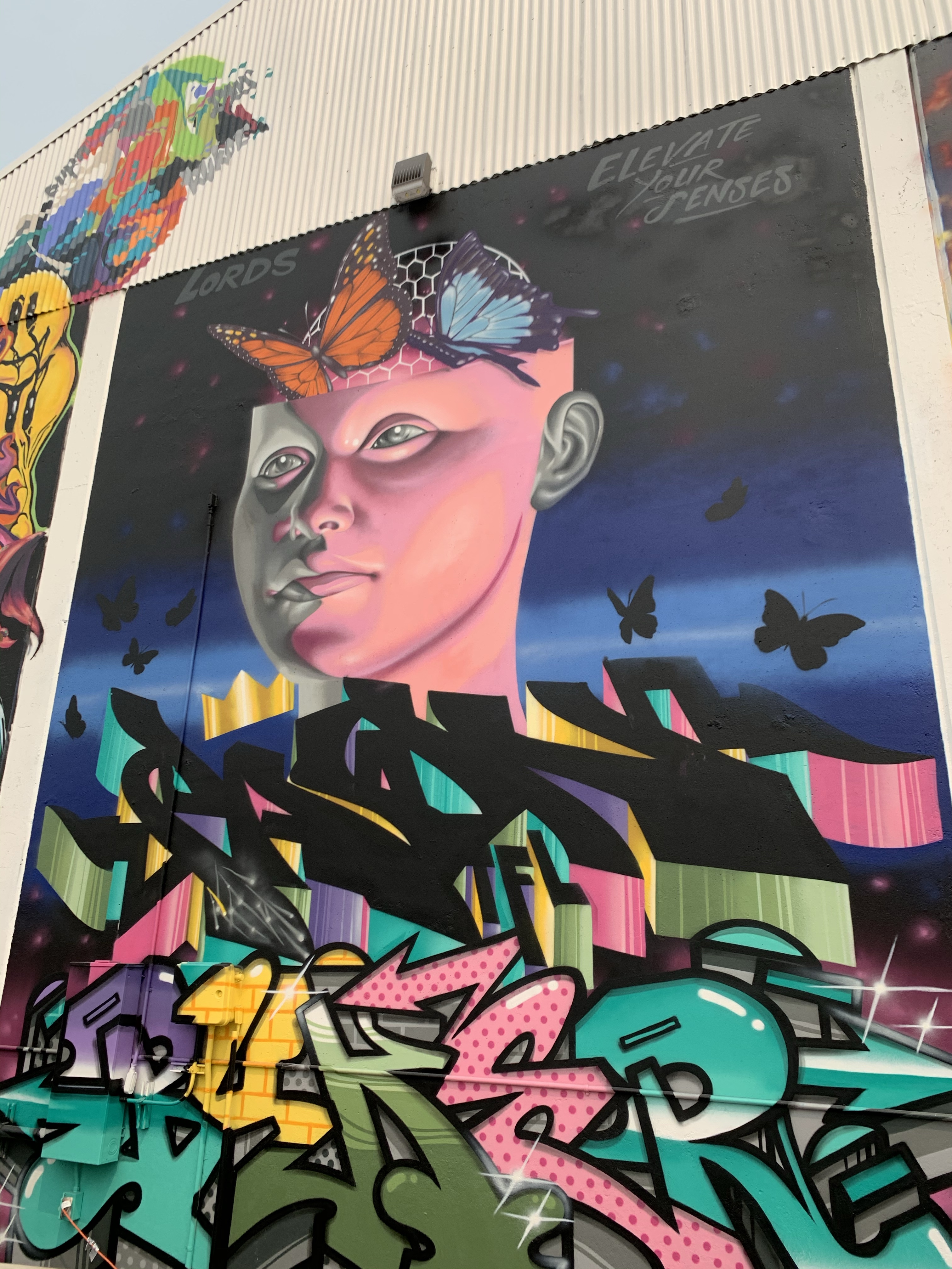 The Wide Open Walls 916 festival has come and gone for 2020 and I have a lot of great murals to share. Mr. Hunka-hunka burnin’ love here is probably one of my favorites for the year. Tattoos adorn his stellar face making this large mural interesting and eye catching from any angle.