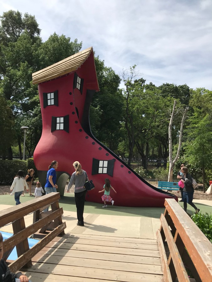 Fairytale town, located in Land Park, is a staple for all young Sacramentans. I came here as a kid and recently took my young son for the first time. Memories came flooding back. The park has been gussied up thank goodness with fresh paint and new additions everywhere. This is great since it was a little tired in the 70’s when I was a kid. (Doing the math though, it makes sense, because most of the park was built in the 50’s so it was already old when I was running around climbing on fantastic representations of our favorite fairytales.)