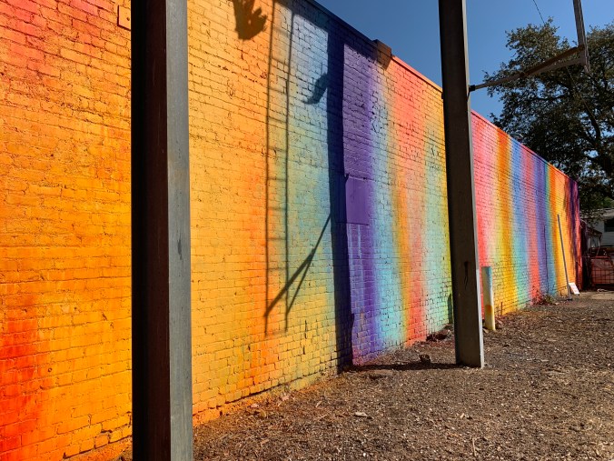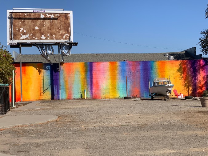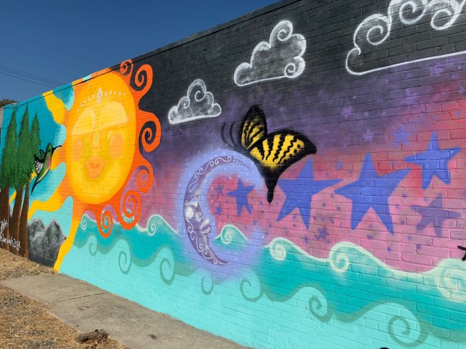 Over the summer a really exciting street art event (Wide Open Walls 916) came to Sacramento which painted the walls…literally. It took a seemingly benign wall or building and turned it in to something amazing. I posted previously on some great selections from the event located in downtown Sacramento. I was so impressed I decided to head to another area of town which was of focus for the event which I had not had time to visit previously – Del Paso. I was most looking forward to seeing the the rainbow colored installation directly below because I was drawn to the bright and cheerful colors. I was underwhelmed to say the least not by the art but by the building and it’s surroundings. This is a classic example of the reality of what surrounds a photo. I’m sure the artist is less than thrilled with what became of his piece. The overall environment left a little to be desired and so did the art but I thought I would share for the fun of it. I still can’t wait for the event to come back again next year…