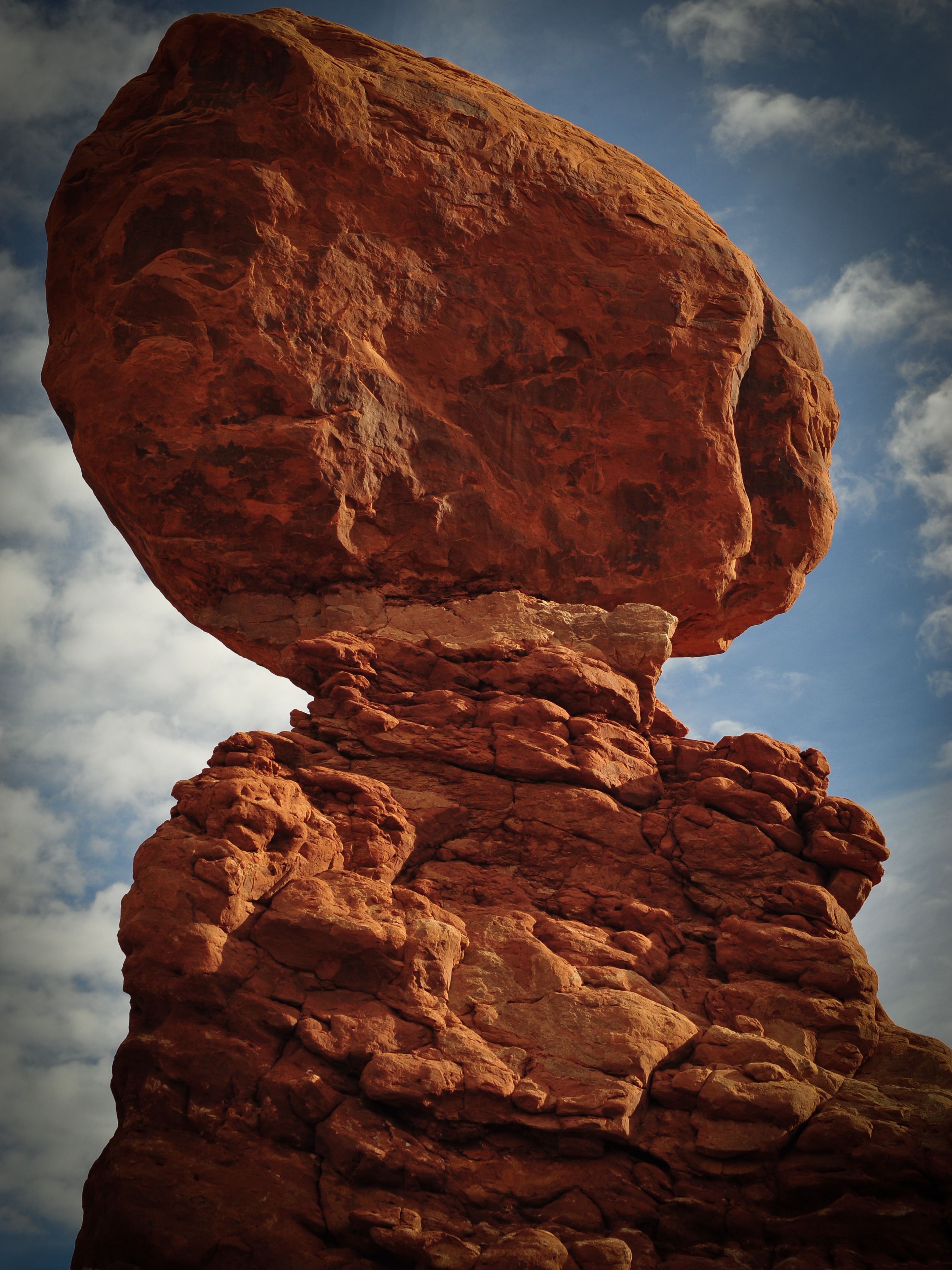 As your mouth is just beginning to water one takes in Balanced Rock.  I can tell you I would have had my mind blown if this was all I ever saw in the park.  The gossips may be wondering when the rock will fall because surely it will be any moment now?  Balance Rock is a giant bolder precariously balanced on a very very small base.   As you walk on a path around it you realize it is quite possible it could fall while you are standing there and you start wondering how fast you can actually run.  It was also at this point of the park that you really start understanding the complexity of color in the park as well.  All of the rock is red and orange but it is a million different shades that come together in a glorious rainbow that would make Bob Ross proud and make Ansel Adams want to shoot in color.  (No I did not enhance the color in these photos!  The darker photos were taken in the morning and the more orange were taken at sunset.)