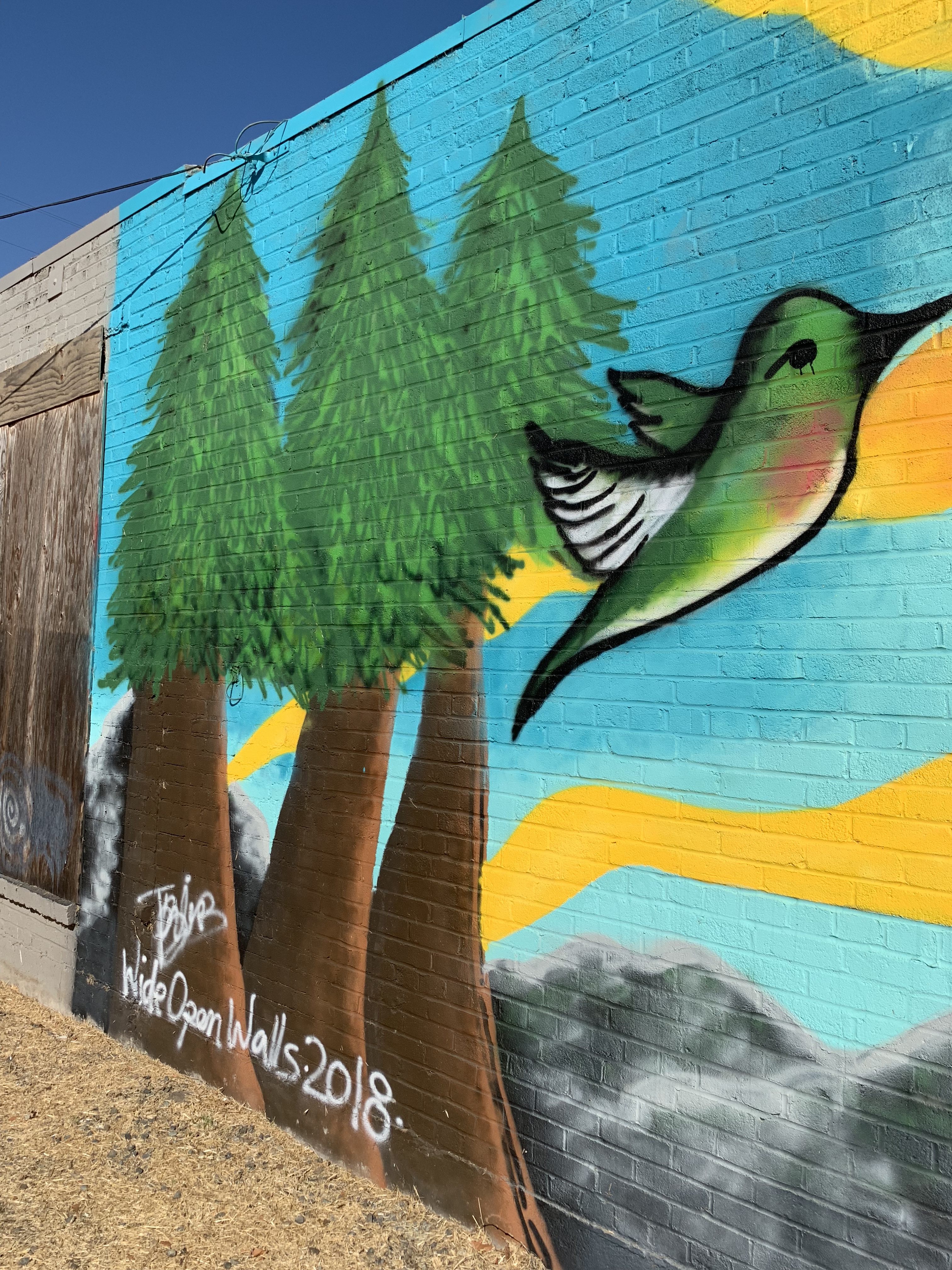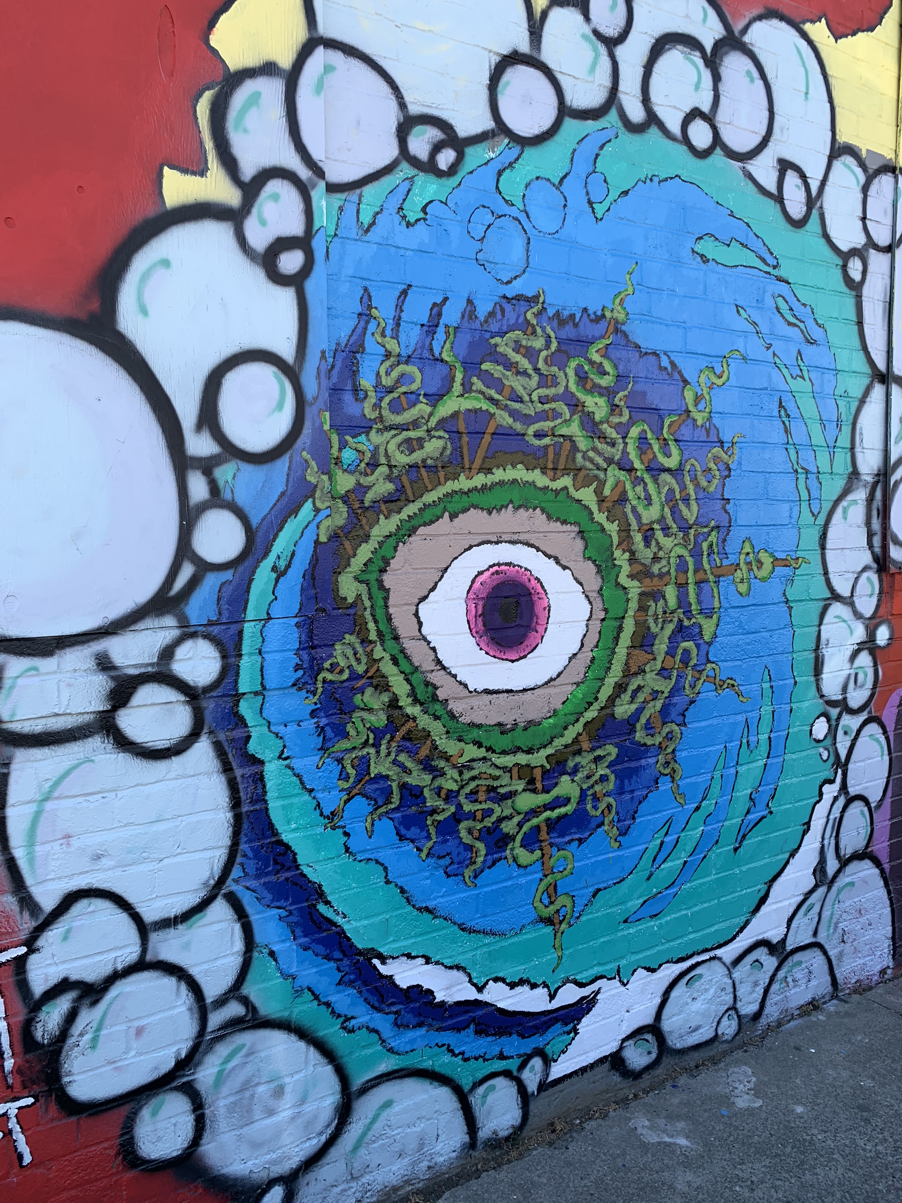 This art wall reminds me of some of the Impressionism I have been fortunate enough to see in museums throughout the world. I wonder what the great artists would think of all of this temporary “graffiti art” on walls and buildings? I would like to think they would be right up there with scaffolding doing it themselves. What do you think?